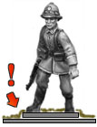 Inaccuracies in the moulding process mean that often the moulded base is not very flat underneath. To get a better fit, hold the figure over a bin and rub it up and down on a file or a bit of coarse sandpaper taped over a block of wood.