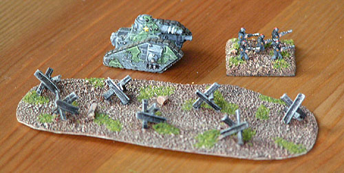 the tank traps. The tank traps are painted black, then drybrush with dark silver.